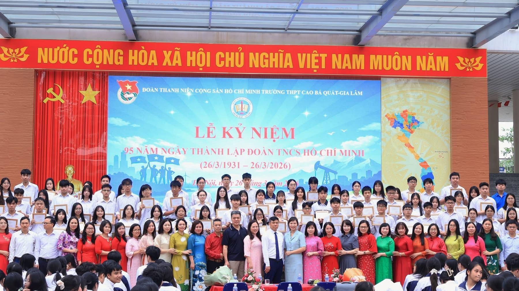 Sáng ngày 26/3/2026, trường THPT Cao Bá Quát Gia Lâm đã long trọng tổ chức buổi lễ chào mừng 95 năm ngày thành lập Đoàn TNCS Hồ Chí Minh trong không khí trang trọng, sôi nổi và đầy tự hào.
