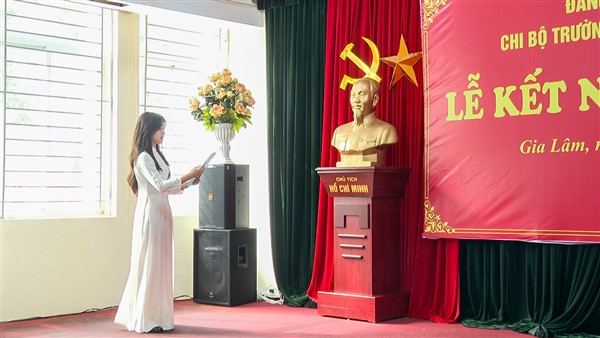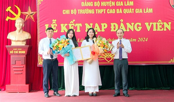 Thực hiện Đề án số 20-ĐA/TU ngày 24/10/2022 của Ban Thường vụ Thành ủy Hà Nội về nâng cao chất lượng kết nạp đảng viên ở Đảng bộ thành phố Hà Nội, được sự nhất trí của Ban Thường vụ Huyện uỷ Gia Lâm, sáng ngày 19/05/2024, trong không khí cả nước hân hoan kỷ niệm 134 năm sinh Chủ tịch Hồ Chí Minh (19/05/1890 - 19/05/2024), Chi bộ trường THPT Cao Bá Quát Gia Lâm đã tổ chức Lễ kết nạp Đảng viên cho 02 quần chúng là học sinh xuất sắc lớp 12 vào Đảng Cộng sản Việt Nam.