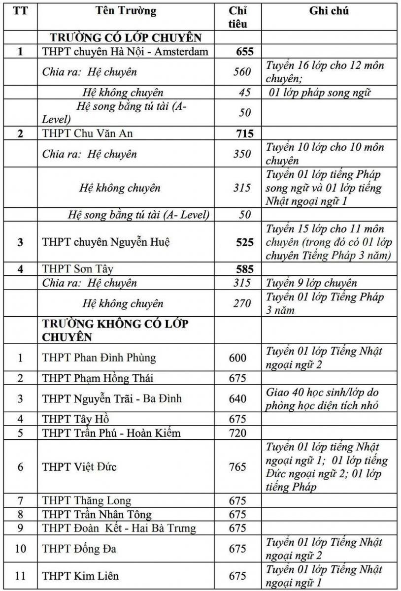Chỉ tiêu tuyển sinh vào lớp 10 THPT của Thành phố Hà Nội năm học 2021-2022