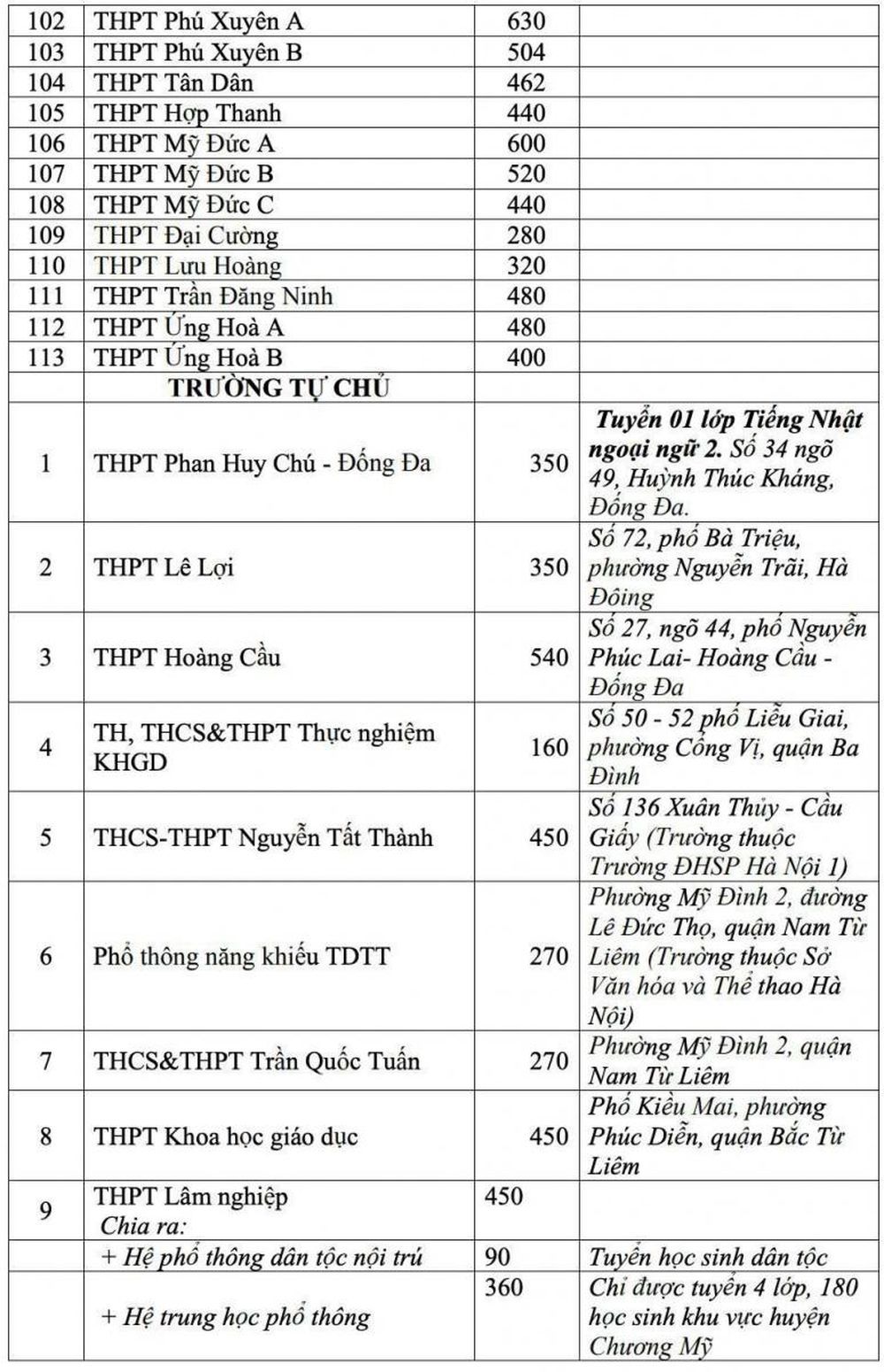 Chi tiết chỉ tiêu tuyển sinh vào lớp 10 trường trung học phổ thông: