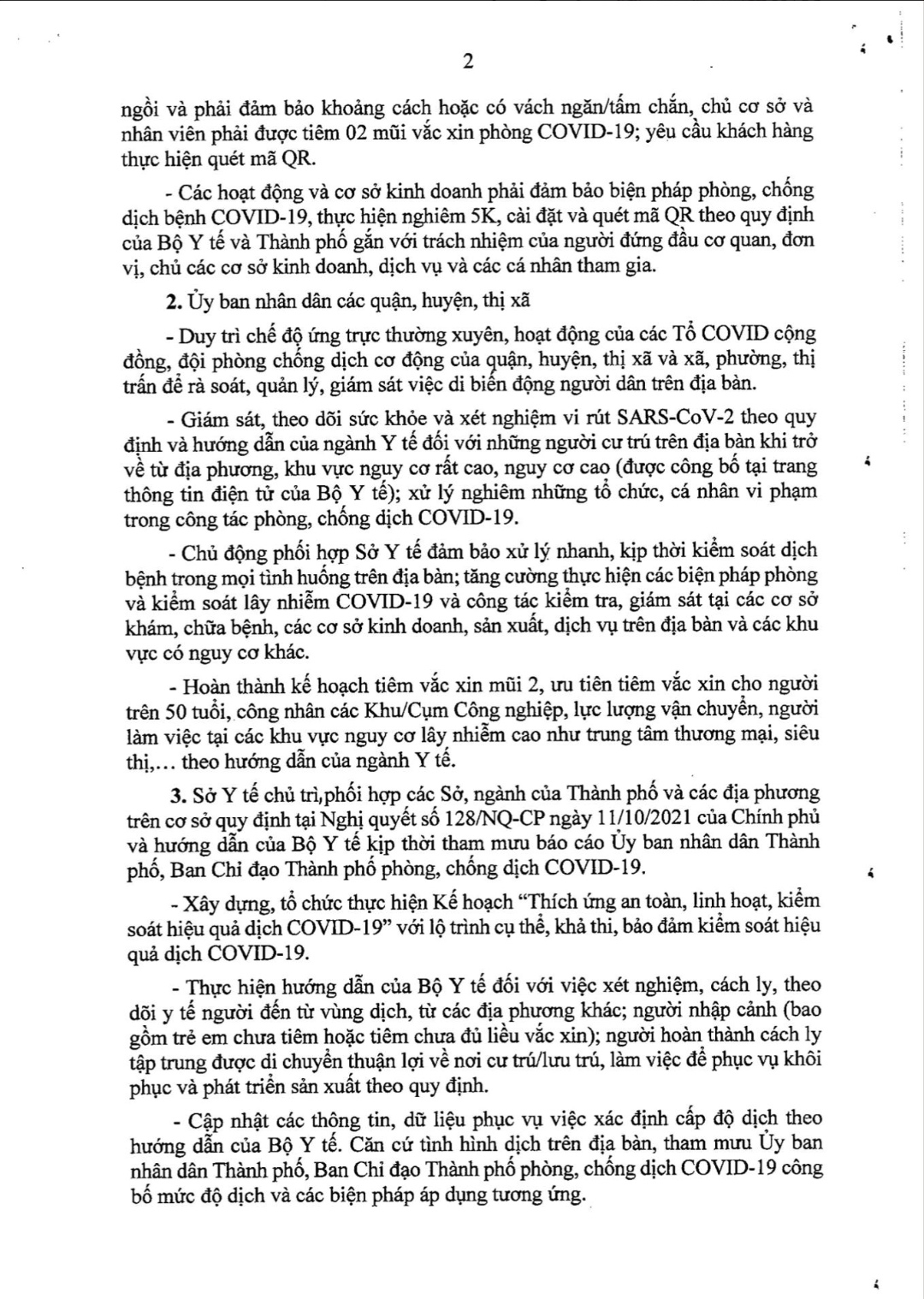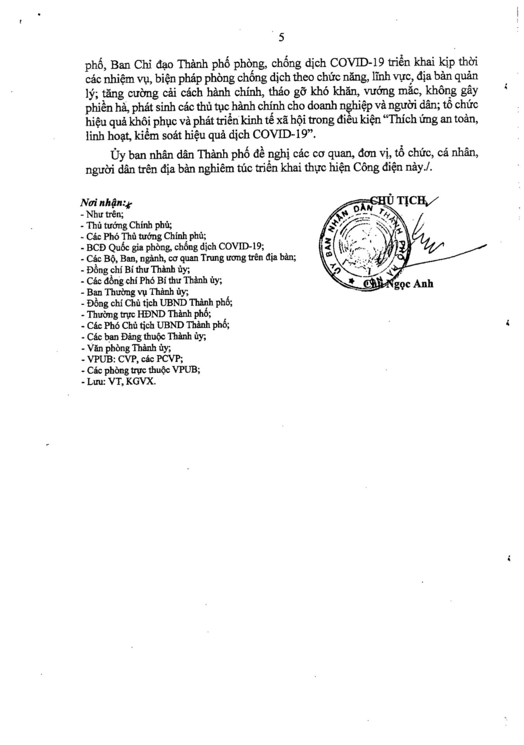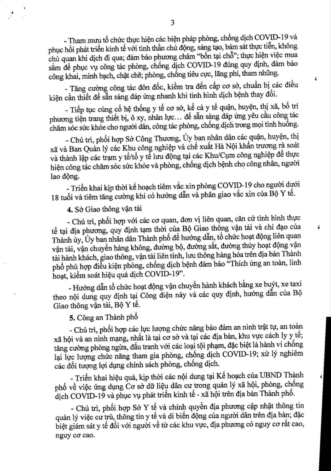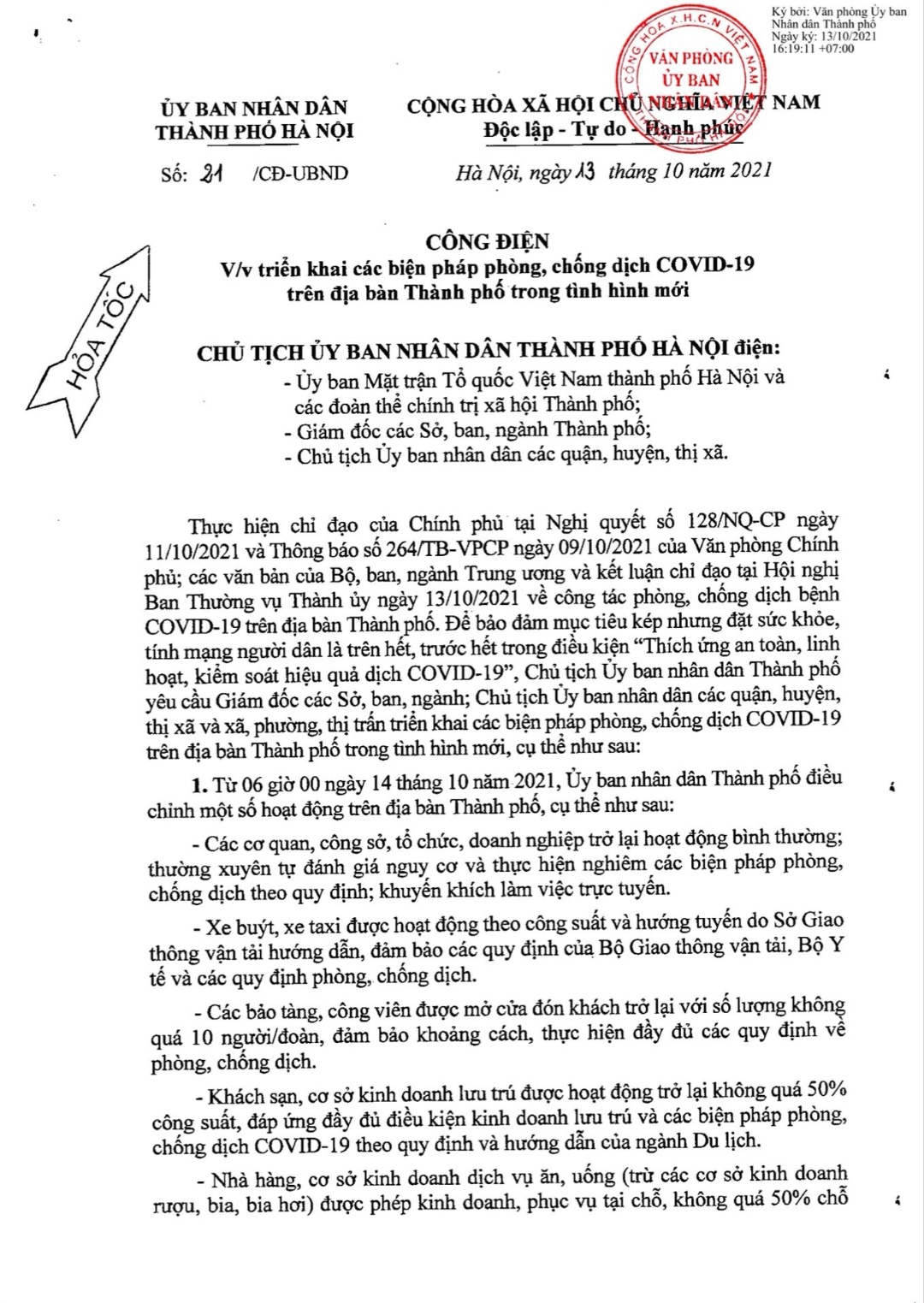 Công điện số 21 về việc triển khai các biện pháp phòng, chống dịch COVID-19 trên địa bàn Thành phố trong tình hình mới