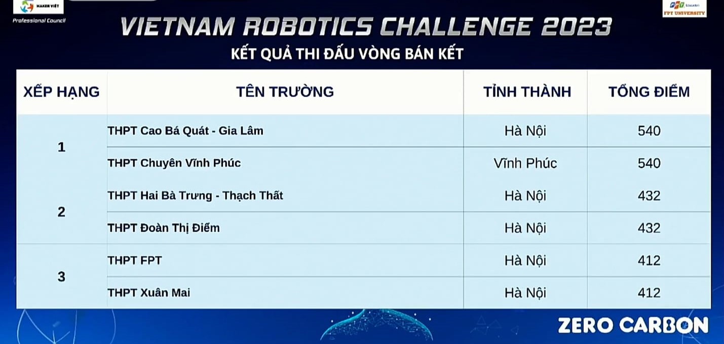 Ngày 15 và 16/7/2023, tại Đại học FPT Hà Nội đã diễn ra vòng chung kết cuộc thi Vietnam Robotics Challenge 2023 với sự tham gia thi đấu của 66 trường THPT trên toàn quốc.