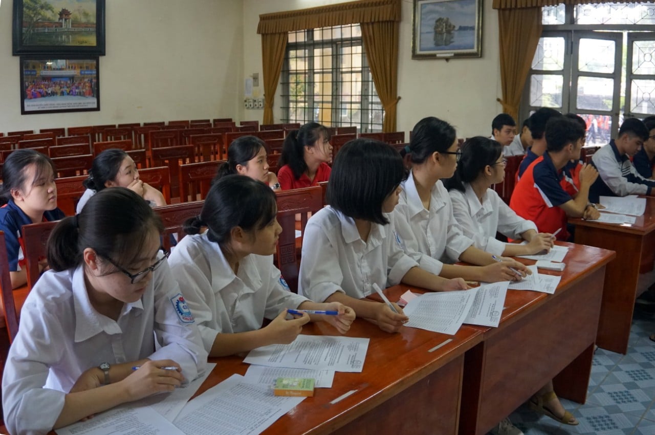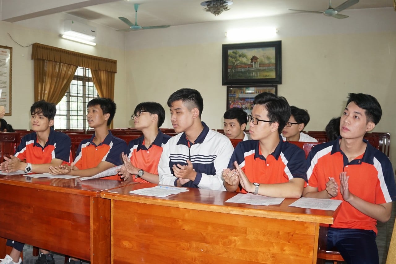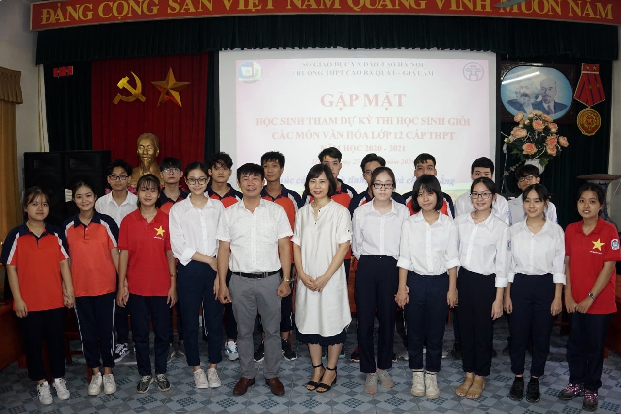 Sáng 25/09/2020, Ban giám hiệu nhà trường tổ chức buổi gặp mặt Đội tuyển tham dự kì thi Học sinh giỏi cấp thành phố các môn văn hoá lớp 12. Trong buổi giao lưu, đại diện thày cô trong Ban giám hiệu đã chia sẻ, động viên, dặn dò kĩ lưỡng các em bình tĩnh, tự tin thể hiện hết mình trong cuộc đọ sức tranh tài trong ngày 29/09/2020 sắp tới.