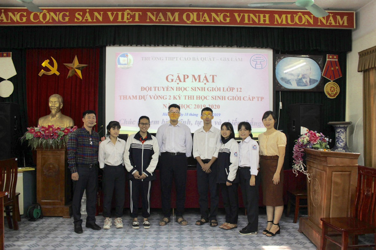 Trong kì thi Học sinh giỏi cấp Thành phố diễn ra vào đầu tháng 10/2019, đội tuyển trường THPT Cao Bá Quát - Gia Lâm đã đạt được những thành tích xuất sắc. Đặc biệt trong số đó có 6 học sinh ưu tú nhất được chọn để dự thi vòng 2 nhằm chọn ra đội tuyển đi thi Quốc gia. Ngày 18/10 vừa qua tại phòng Hội đồng, Ban Giám hiệu nhà trường đã có buổi gặp mặt những học sinh này..