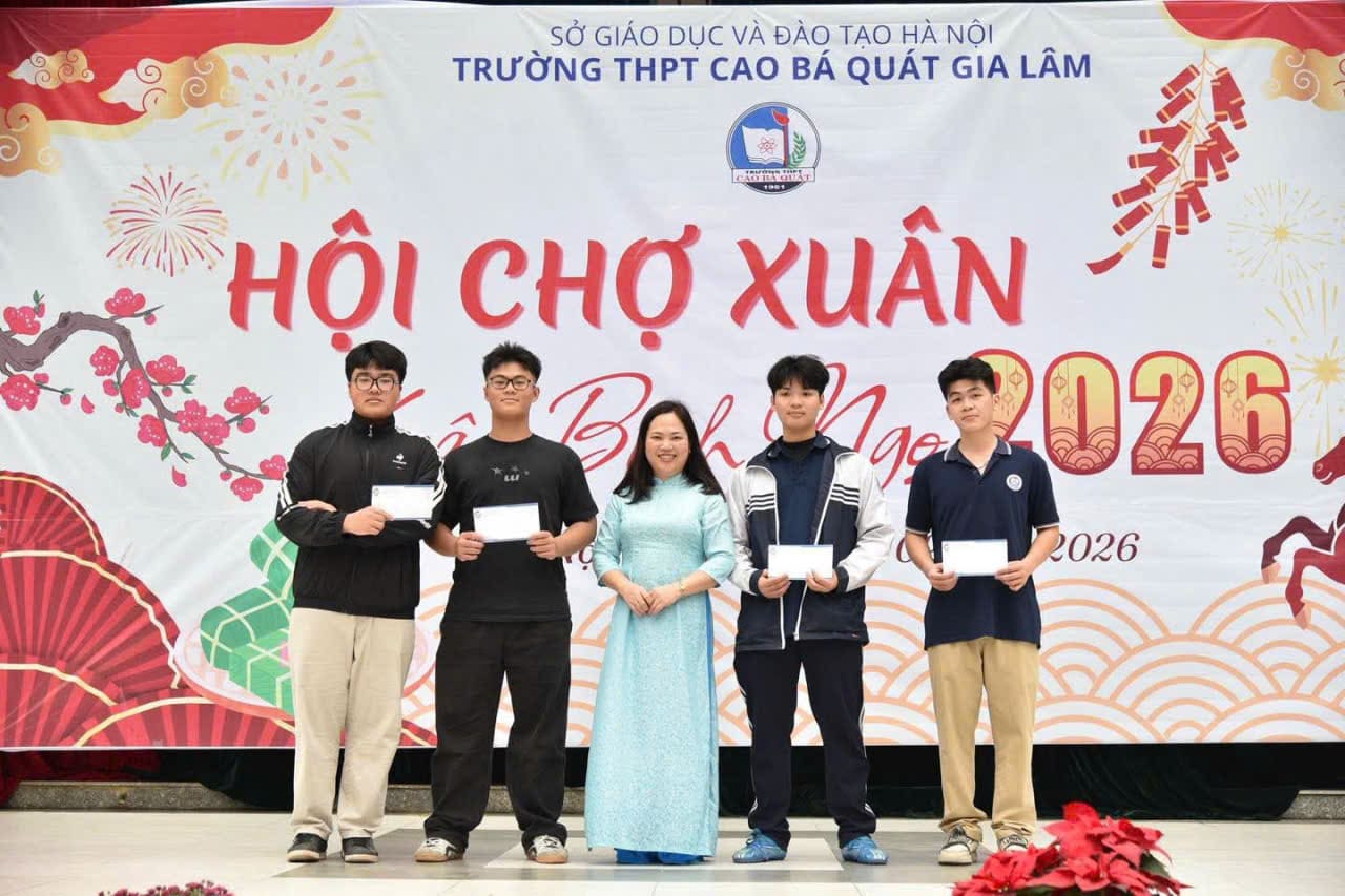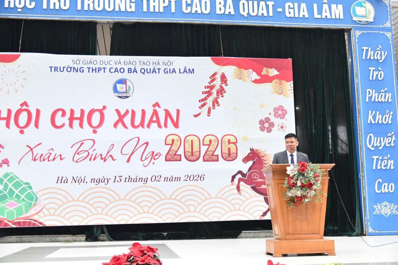 Sáng nay, ngày 13/02/2026, trong không khí rộn ràng đón xuân mới, Trường THPT Cao Bá Quát - Gia Lâm đã tổ chức thành công “Hội chợ Xuân” Chào Xuân Bính Ngọ 2026 với nhiều hoạt động ý nghĩa, tạo nên một không gian xuân ấm áp, vui tươi và giàu bản sắc.