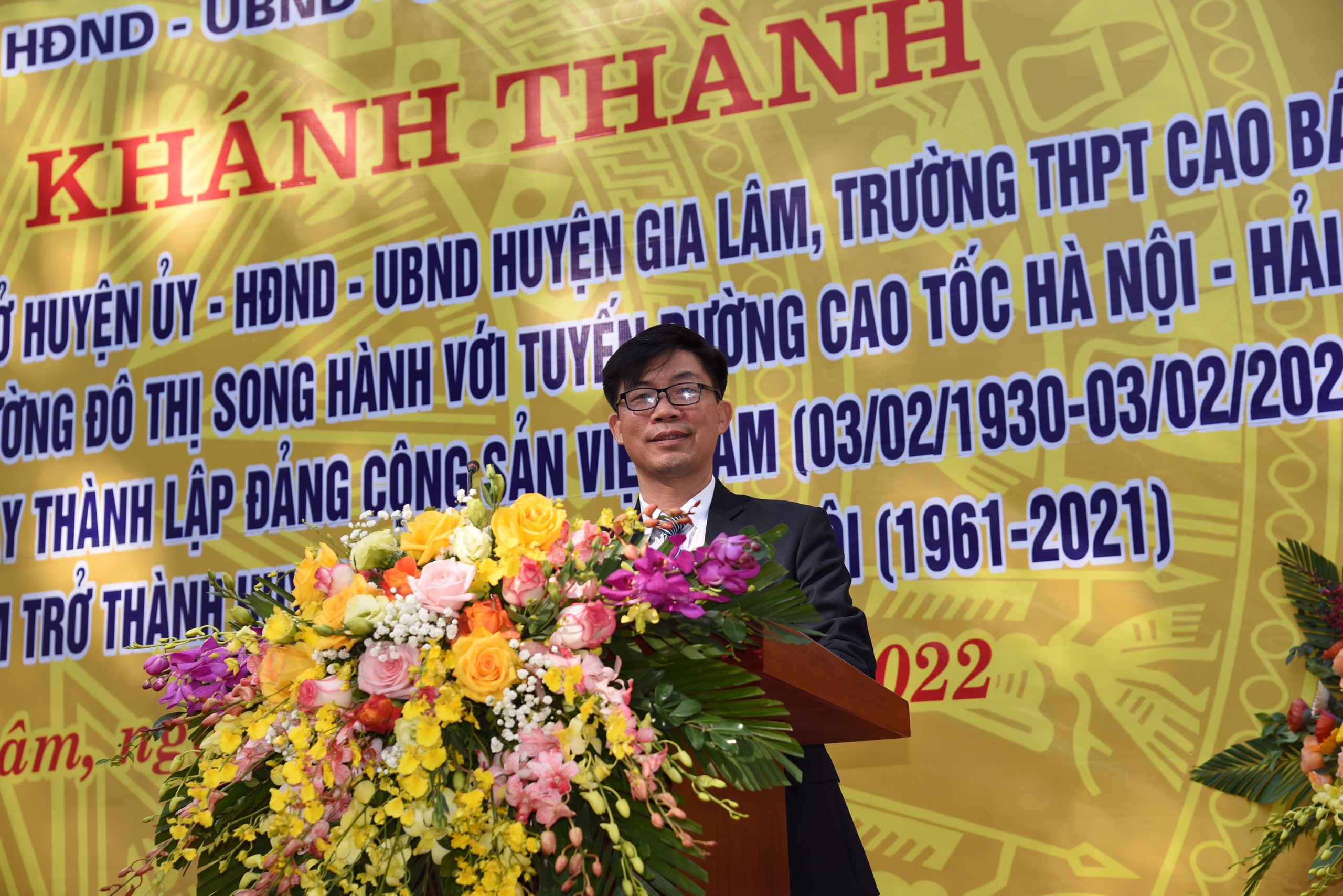 Trong buổi lễ khánh thành, đón nhận bàn giao công trình đầy ý nghĩa này, thay mặt các thế hệ giáo viên - học sinh của nhà trường, thay mặt các bậc PHHS, thày giáo Đặng Văn Chiến- Bí thư chi bộ, Hiệu trưởng nhà trường đã gửi lời cảm ơn chân thành tới các cơ quan, tổ chức, cá nhân đã đóng góp, thúc đẩy góp phần tạo nên một ngôi trường hiện đại như ngày hôm nay. Đặc biệt là gửi lời cảm ơn đối với sự đầu tư trực tiếp của Huyện Gia Lâm; sự ủng hộ của Thành phố, Sở Giáo dục và đào tạo Hà Nội là sự khích lệ lớn đối với thày trò Trường THPT Cao Bá Quát - Gia Lâm.