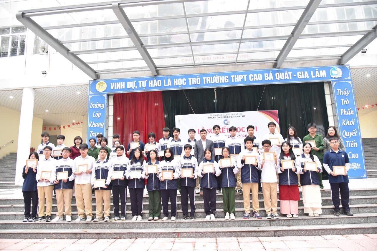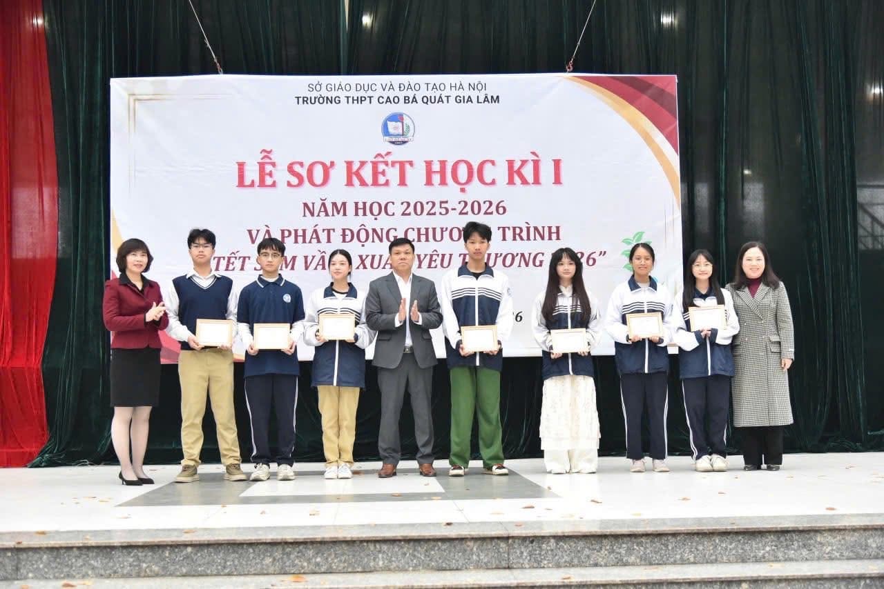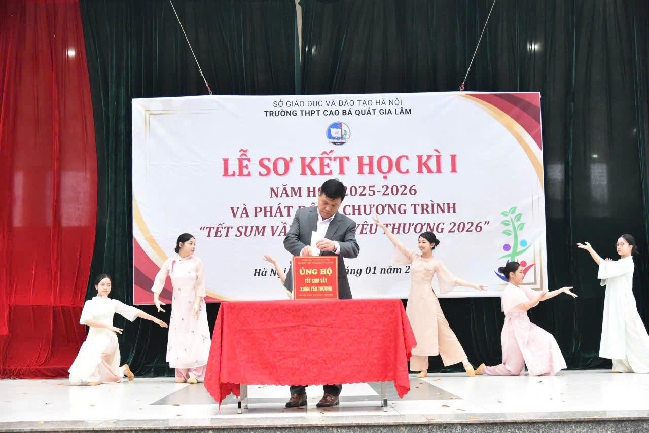 Sáng thứ Hai, ngày 19/01/2026, trong tiết trời se lạnh của những ngày giáp Tết, sân trường THPT Cao Bá Quát – Gia Lâm đã rộn ràng và trang nghiêm khi nhà trường long trọng tổ chức Lễ Sơ kết học kỳ I năm học 2025–2026 kết hợp Phát động chương trình “Tết Sum Vầy – Xuân Yêu Thương”. Đây là sự kiện mang ý nghĩa đặc biệt, vừa tổng kết chặng đường nỗ lực của thầy và trò trong học kỳ đầu tiên, vừa khởi đầu cho một hoạt động nhân văn, lan tỏa tinh thần sẻ chia trong cộng đồng.