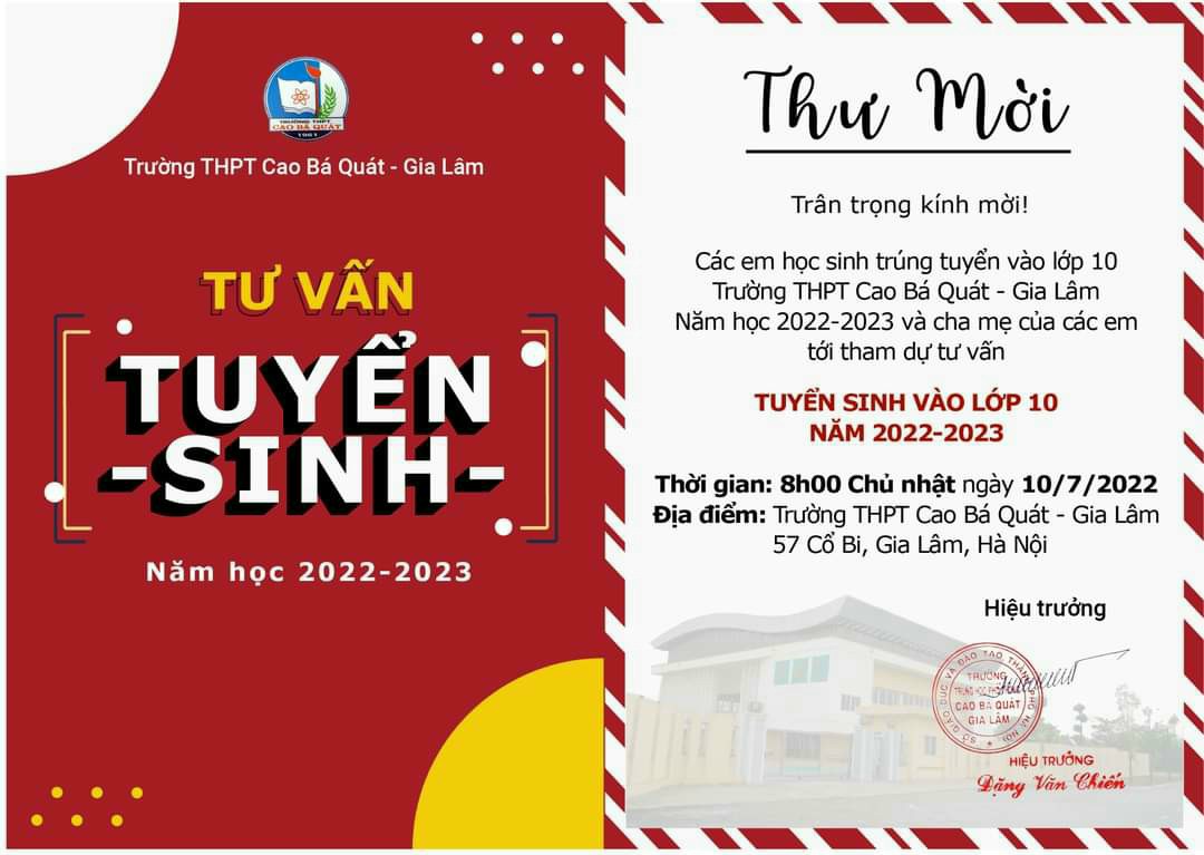Địa điểm: Trường THPT Cao Bá Quát - Gia Lâm (57 Cổ Bi - Gia Lâm - Hà Nội)
