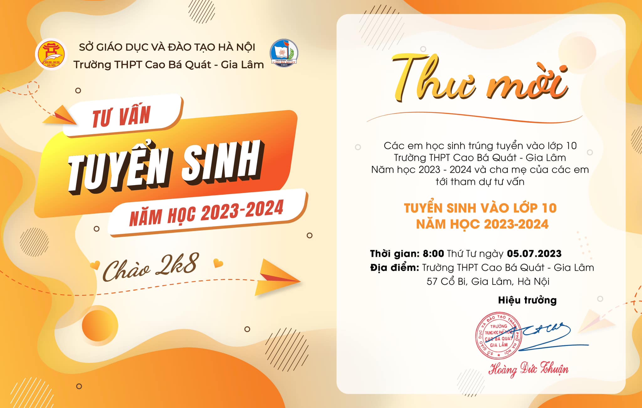 Nhà trường xin trân trọng kính mời Quý Phụ huynh và học sinh đến tham dự Buổi tư vấn tuyển sinh lớp 10 năm học 2023-2024.